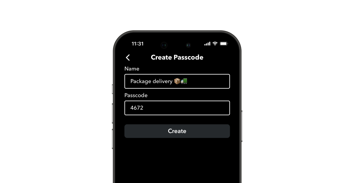 - Set up an access code you can designate for all your package deliveries by tapping "Create Passcode" in the + menu
